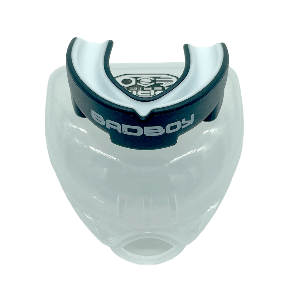 Капа боксерська Badboy чорно-сіра – представляє капу для боксу та єдиноборств, розроблену для максимального захисту зубів, щелепи та головного мозку від ударів і струсів. Цей аксесуар – невід’ємна частина екіпіровки бійця, який цінує свою безпеку і комфорт під час тренувань і змагань. Розмір єдиний та налаштовується індивідуально під Вашу щелепу шляхом варіння у гарячій воді згідно з інструкцією.