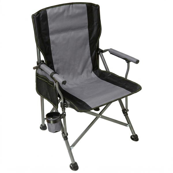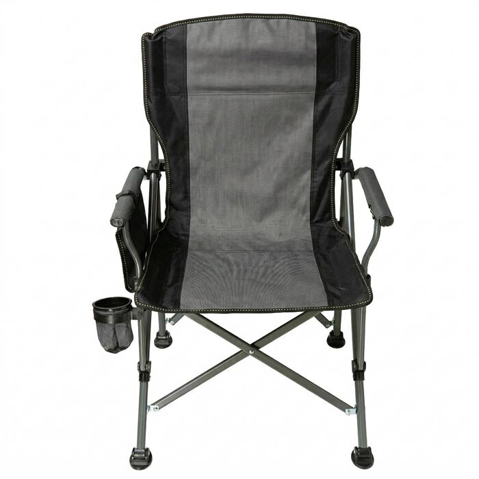 Повна комплектація для відпочинку: Стілець оснащений двома зручними підлокітниками, інтегрованим підсклянником для напоїв та двома кишенями (одна спеціально для мобільного телефону, інша — для важливих дрібниць)