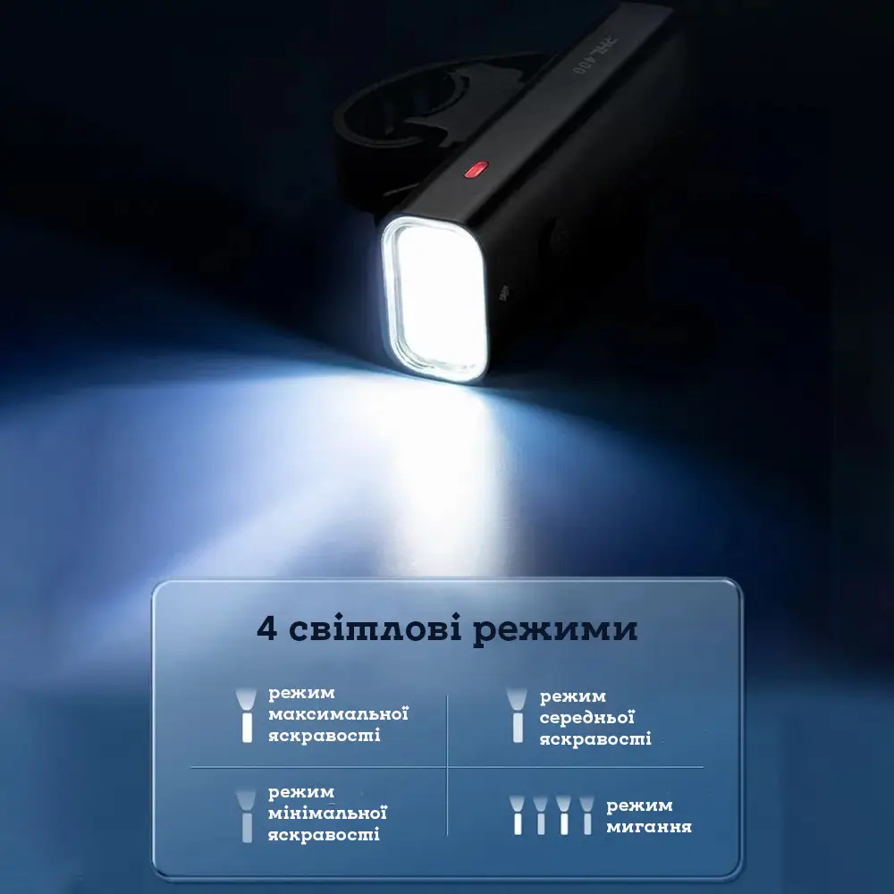 Інноваційний дизайн! Може бути встановлена на кермо (згори), так і підвішена (знизу). Використовуйте як ручний ліхтар – міцний алюмінієвий корпус – приємно лежить у руці, а кріплення дозволяє швидко знімати та встановлювати пристрій. Водонепроникна – дозволяє їздити навіть при сильному дощі. USB Type C – зручніший сучасний роз’єм для зарядки. Світловий потік 400 люмен освітлює дорогу вперед на відстань до 200 метрів, дозволяючи вам бути видимим для інших учасників руху. Ви зможете безпечно пересуватися навіть темними ділянками дороги або бездоріжжям.