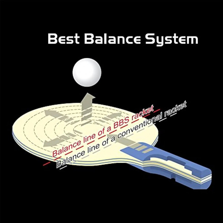 У ракетці використано технологію BBS (Best Balance System). Завдяки їй центр тяжіння ракетки зміщується ближче до середини активної ігрової зони, що значно прискорює удар. А особливий вид пружної легкої губки із мікропорами збільшує катапультуючий ефект гуми.