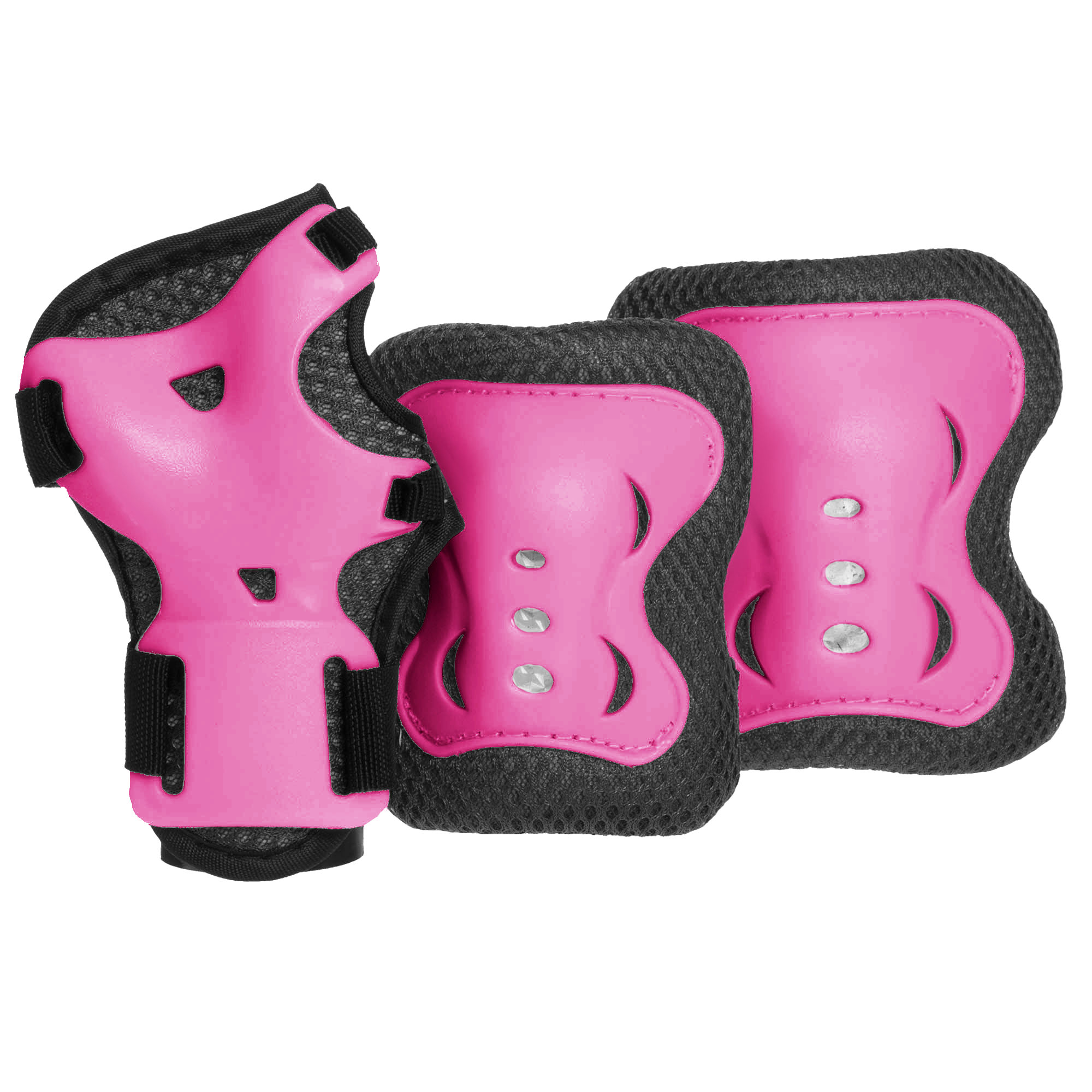 Щоб зробити катання на роликах безпечним, придбайте для дитини якісний захист ліктів, колін і рук від бренду Record. Комплект захисту включає наколінники, які регулюються по посадці за допомогою ремінців на липучках, налокітники з аналогічним способом фіксації на тілі і спеціальні захисні рукавички, що закривають основи долонь і зап’ястя. Комплект має невелику вагу, підкладка виконана з поліестеру. Захисні накладки виготовлені з поліпропілену і здатні витримати падіння на асфальт або сильний удар. Екіпірування дозволяє уникнути появи саден і більш серйозних травм у разі падіння, при цьому не сковуючи рухи.