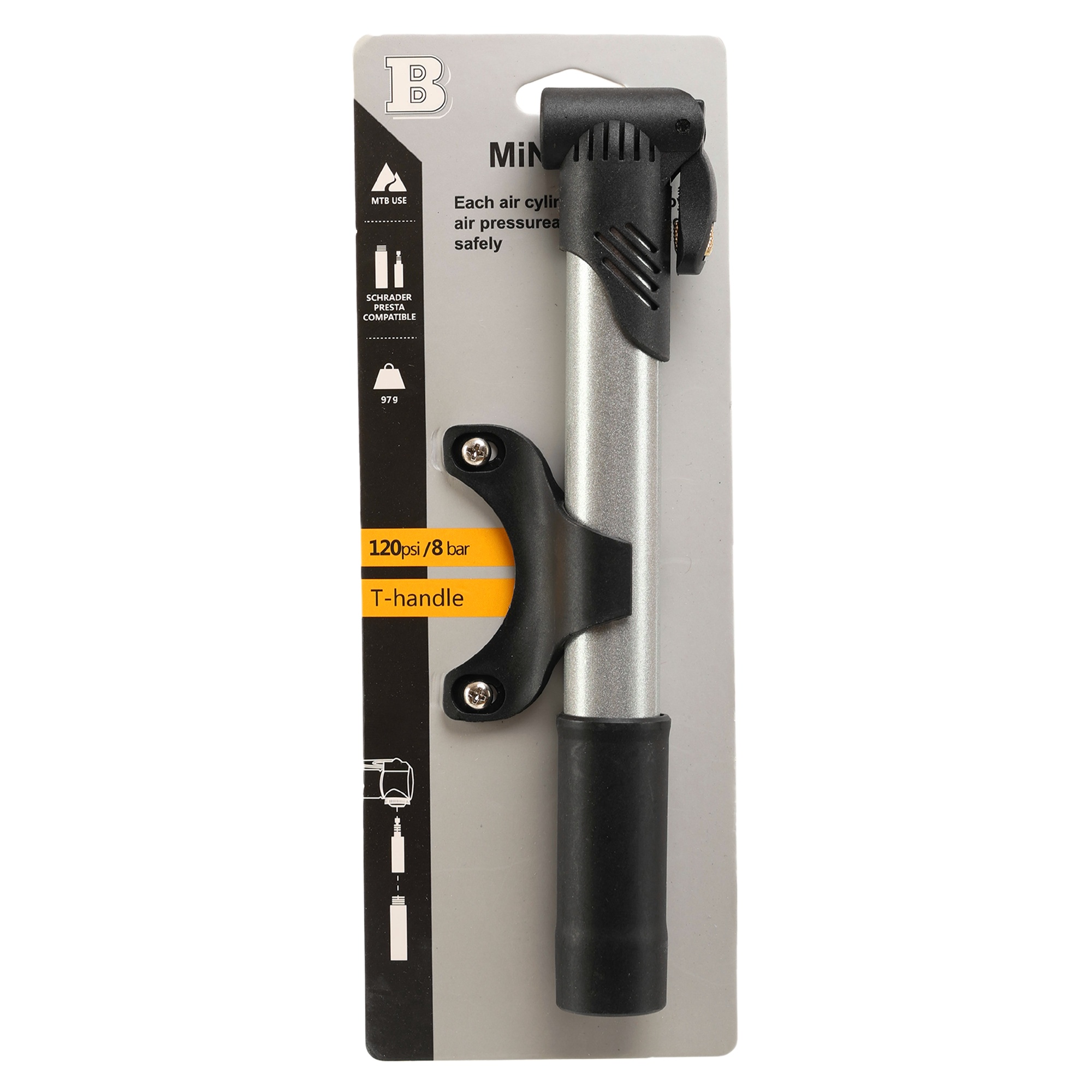 - Компактний розмір дозволяє зручно закріпити насос на рамі велосипеда