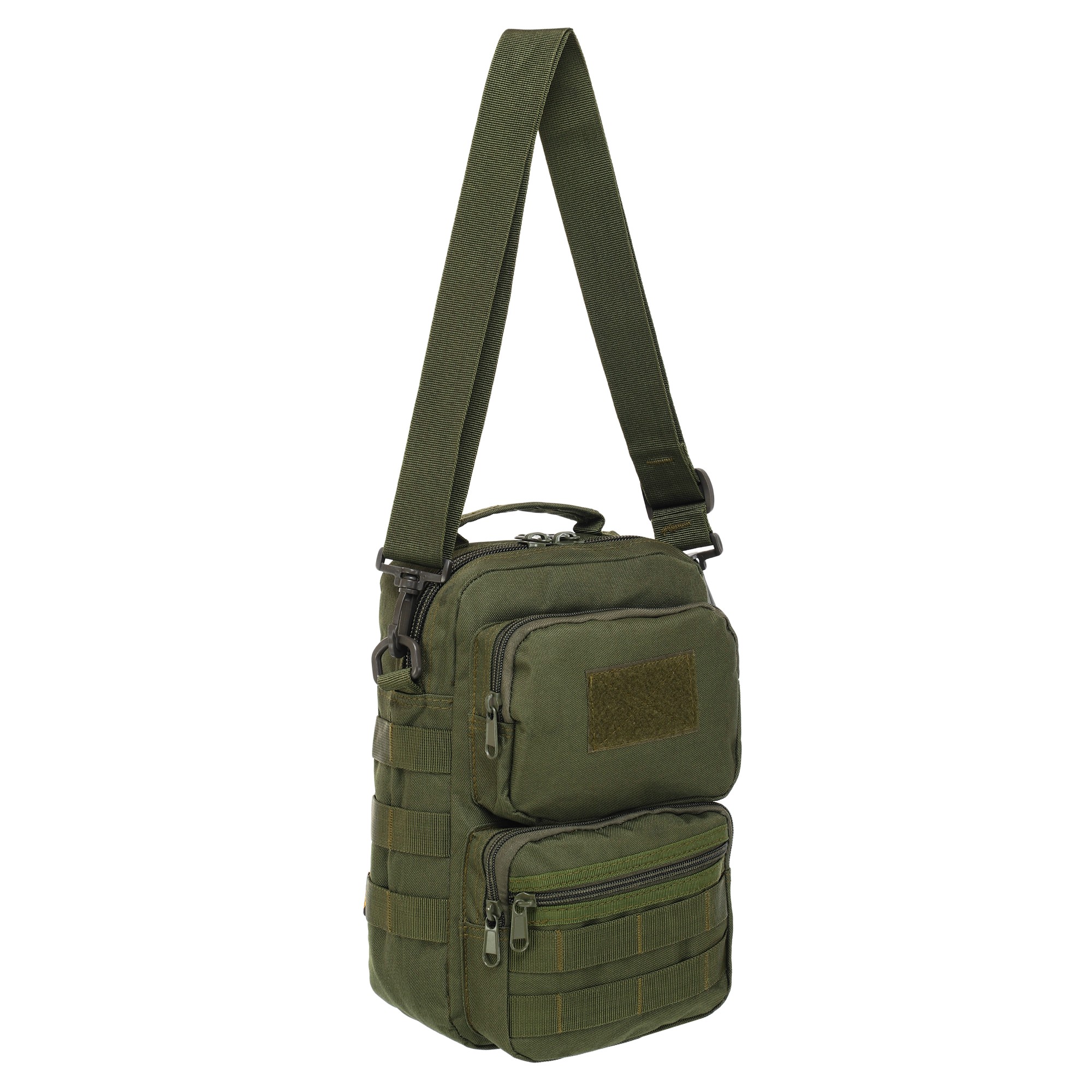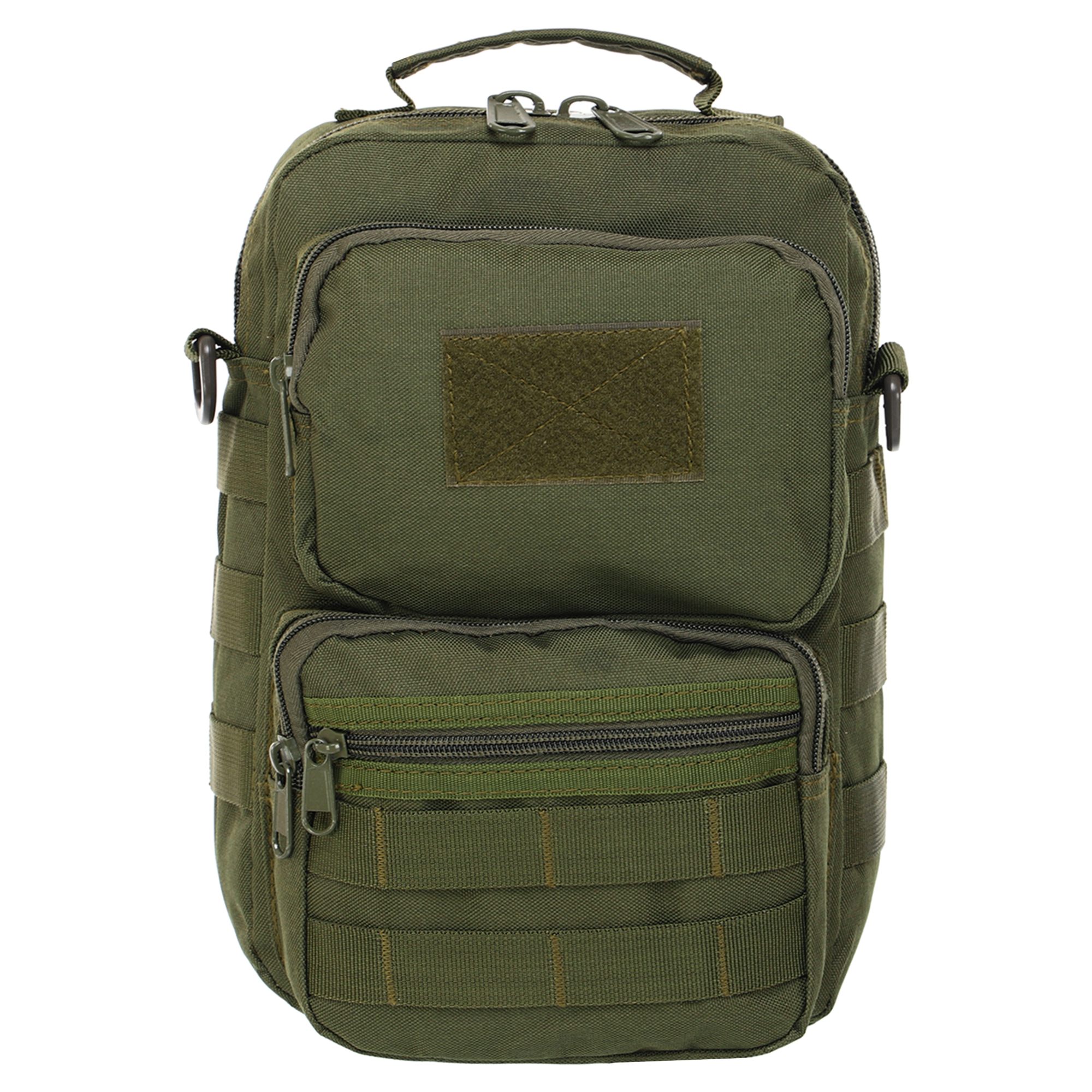 Сумка SILVER KNIGHT TY-9060 – стильна та компактна тактична сумка з безліччю кишень та відділень. Сумка має місткий основний відділ, три фронтальні кишені та одну велику кишеню на тильній стороні. Усі відділи закриваються на блискавку. Зручна широка плечова лямка кріпиться до сумки зручними карабінами. На бічних та лицьових частинах сумки нашиті міцні нейлонові стропи (система MOLLE), до яких можна прикріпити додаткові аксесуари або підсумки.